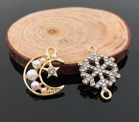 丸カン付きアクセサリーパーツ 月ハンドメイドパーツ 雪コネクターパーツ