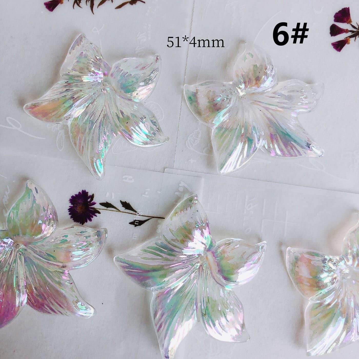 6# 3D オーロラ クリア バタフライ アクセサリーパーツ 立体 アクリルパーツ 蝶々 ハンドメイド デコパーツ