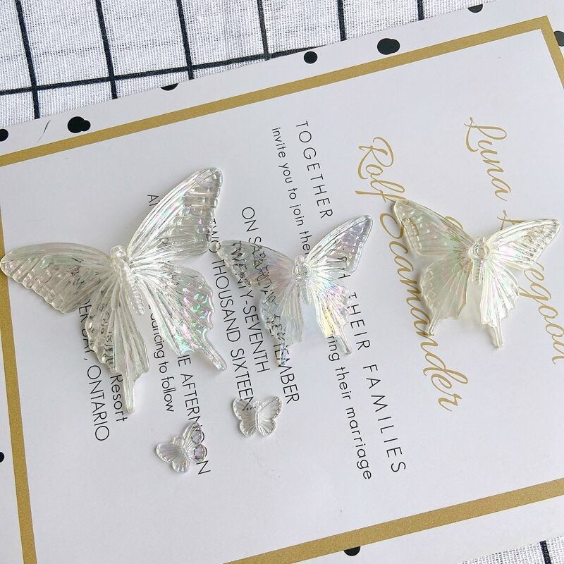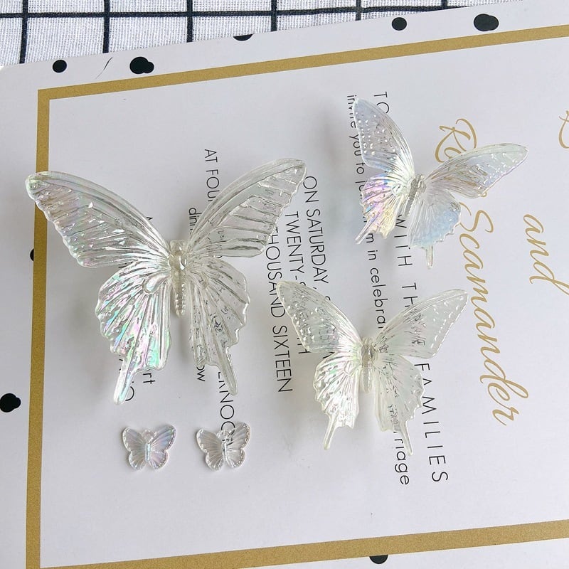 1# 3D オーロラ クリア バタフライ アクセサリーパーツ 立体 アクリルパーツ 蝶々 ハンドメイド デコパーツ