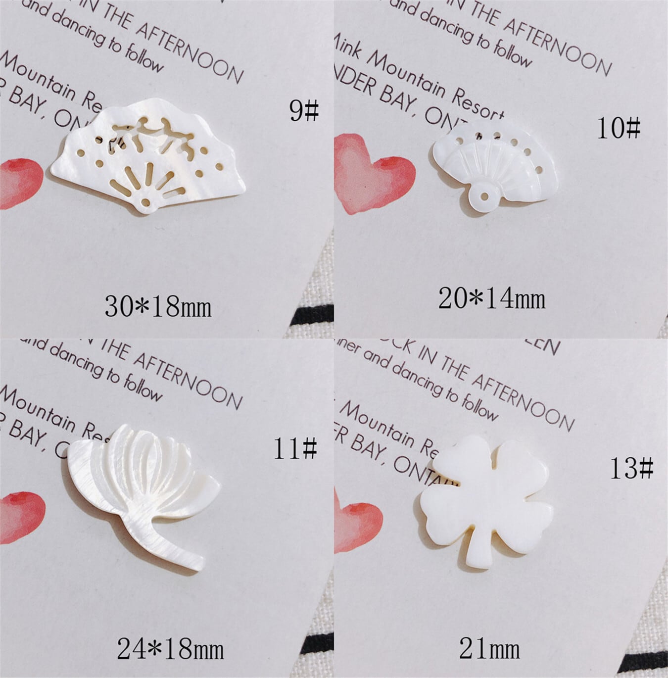 9# デコパーツ 白蝶貝 彫刻 すかしパーツ 扇子 四つ葉のクローバー 和柄 シェルプレート アクセサリーパーツ