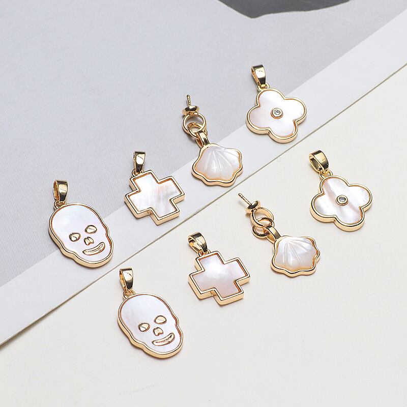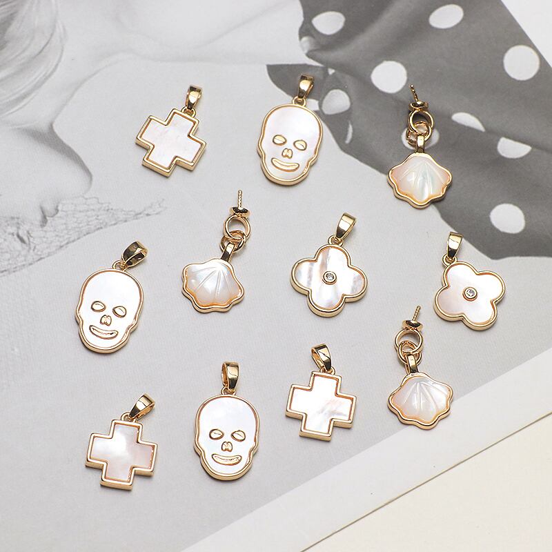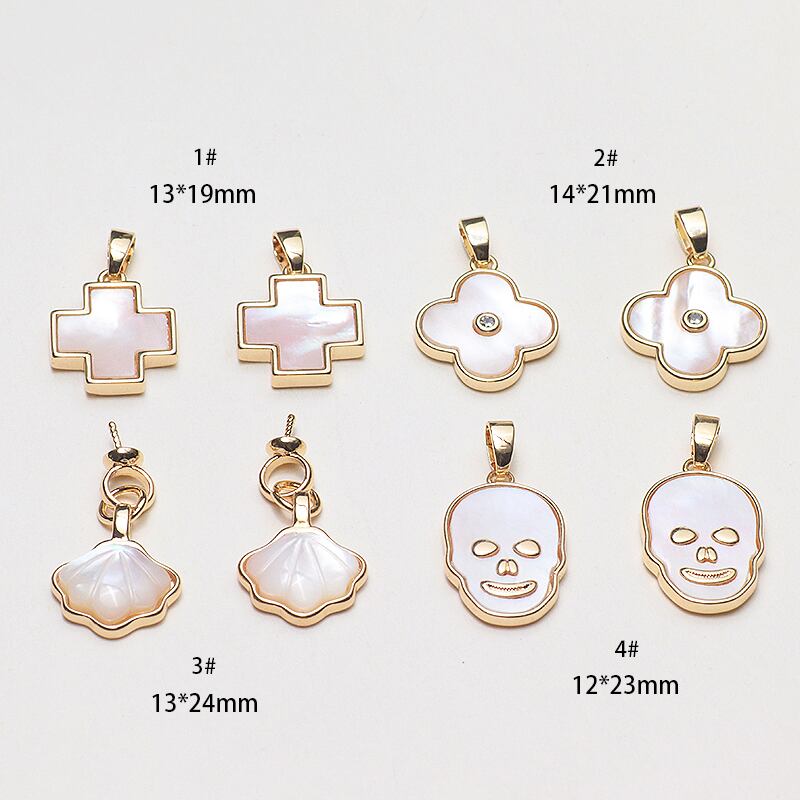 1# シェル ペンダントヘッド ハンドメイド ネックレスパーツ 十字架 クローバー 夏 花 シェルチャーム トップ