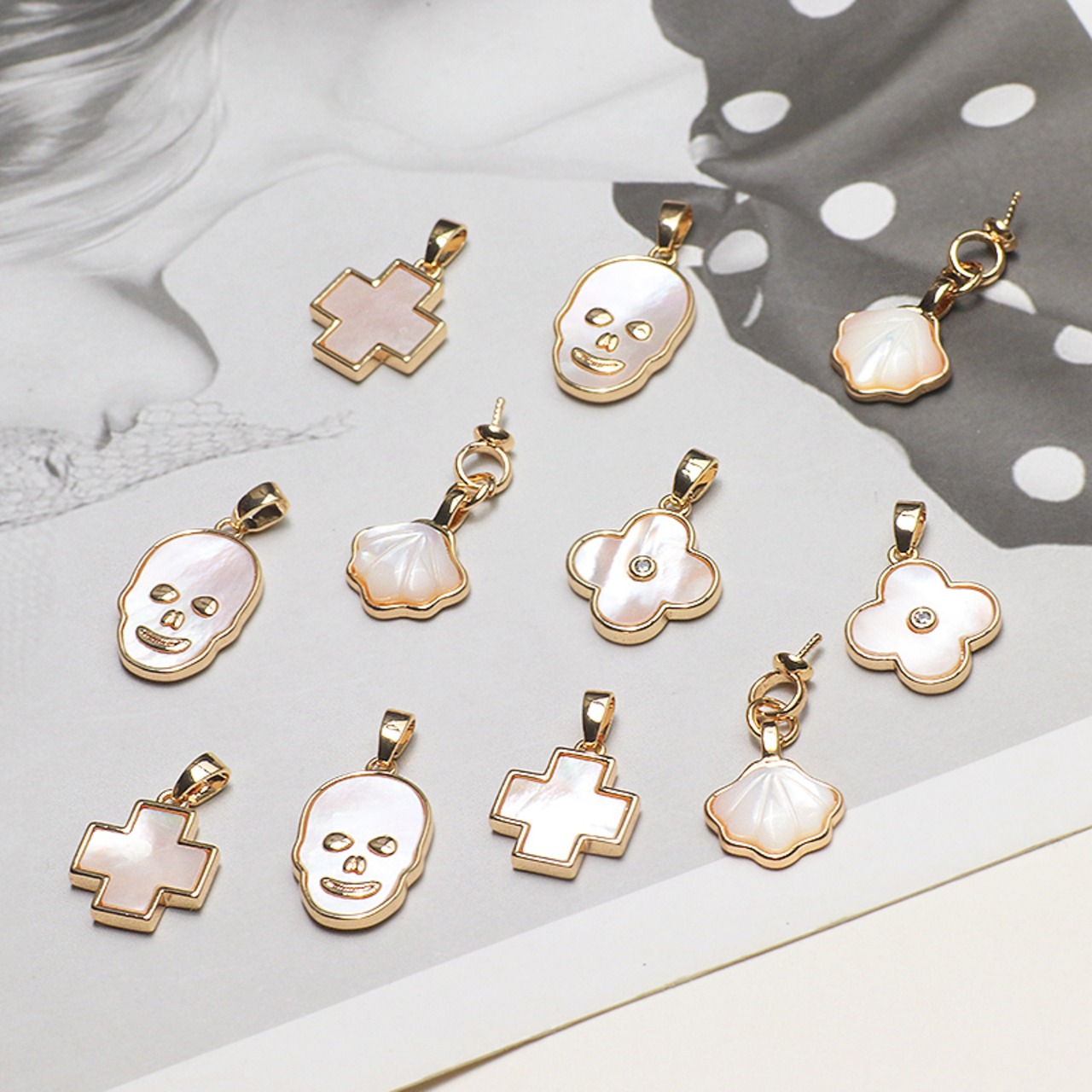 3# シェル ペンダントヘッド ハンドメイド ネックレスパーツ 十字架 クローバー 夏 花 シェルチャーム トップ